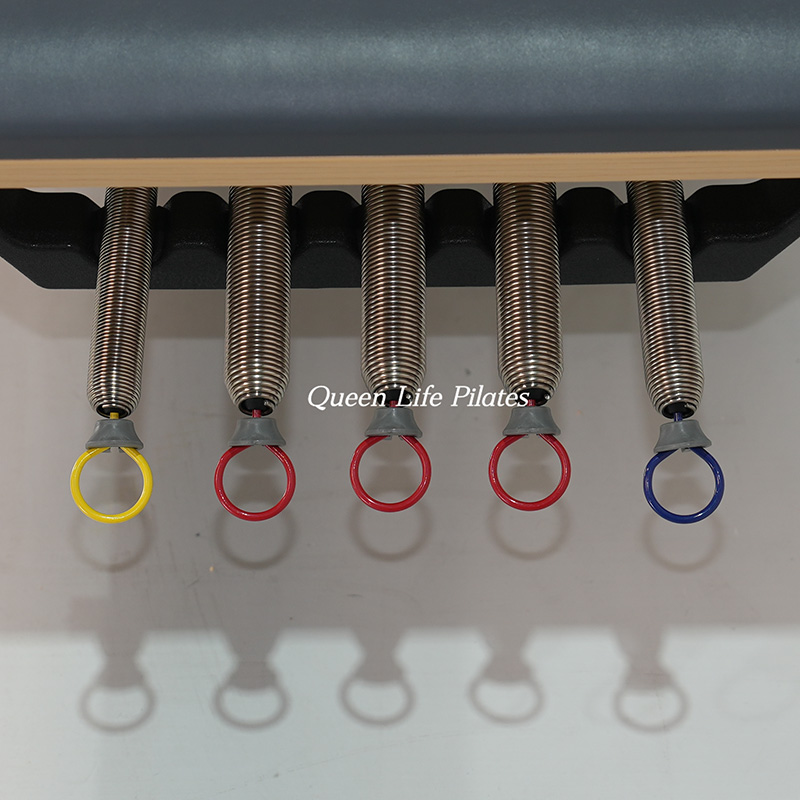 The standard configuration includes 5 German springs, 3 red, 1 blue and 1 yellow. The red one is the heaviest, and the yellow one is the lightest.