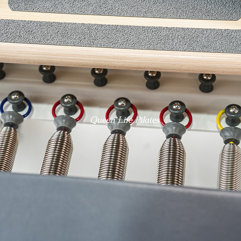 The standard configuration includes 5 German springs, 3 red, 1 blue, and 1 yellow. The red one is the heaviest, and the yellow one is the lightest.